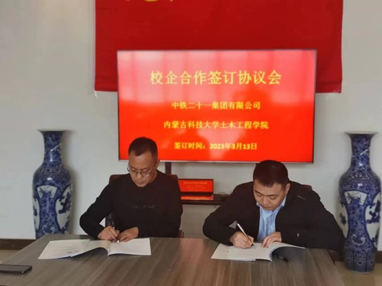 座谈会上,双方就各自基本情况进行了介绍,并在项目合作、人才培养、产学研协同等方面达成了合作意向,签订《校企合作协议》及《校企联合培养定制班框架协议》。《校企联合培养定制班框架协议》签订后,中铁二十一集团有限公司将为定制班学员提供学费、住宿费、奖学金、助学金等支持,为员工成长成才赋能助力。