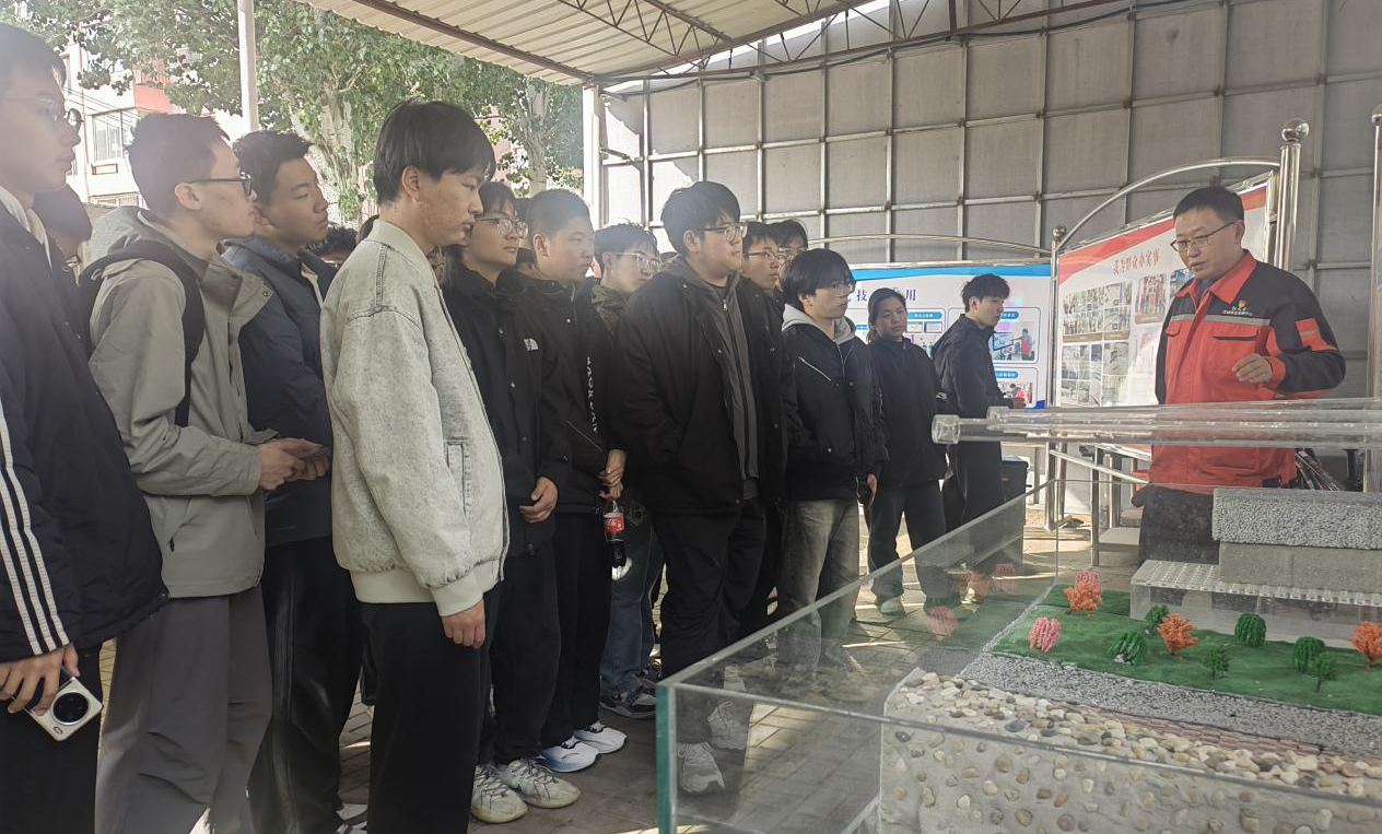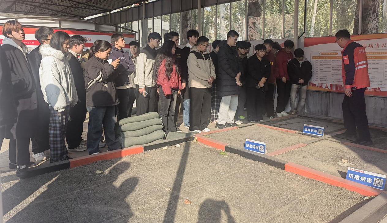 这个由市政中心、设计院、城建集团与我校共建的基地,是认识市政工程的“立体教科书”。道路材料、路基路面结构、桥梁模型、市政管网、海绵城市设施等缩尺模型一应俱全。同学们在此零距离接触了未来将要设计、建造与养护的核心对象,理论知识变得触手可及。