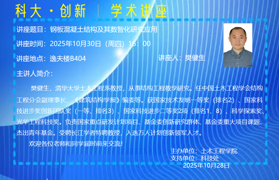 讲座题目:钢板混凝土结构及其数智化研究应用