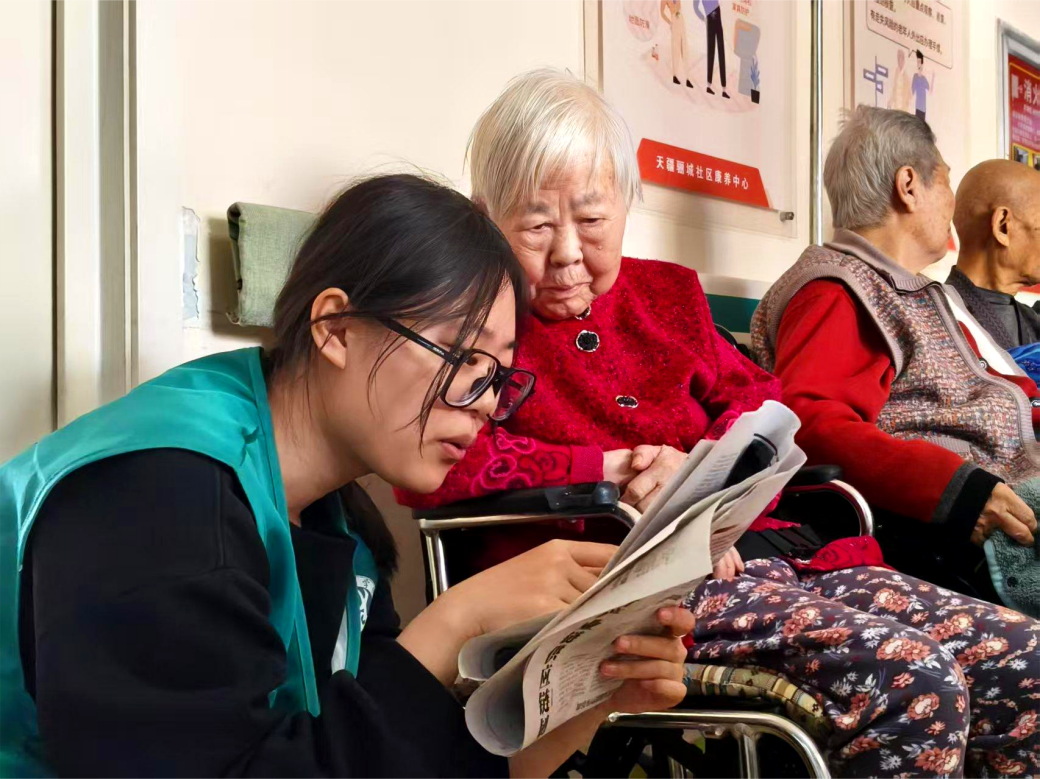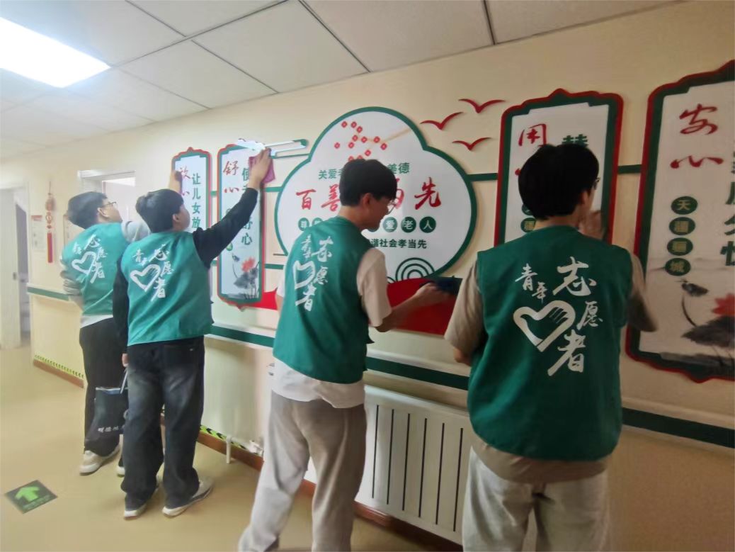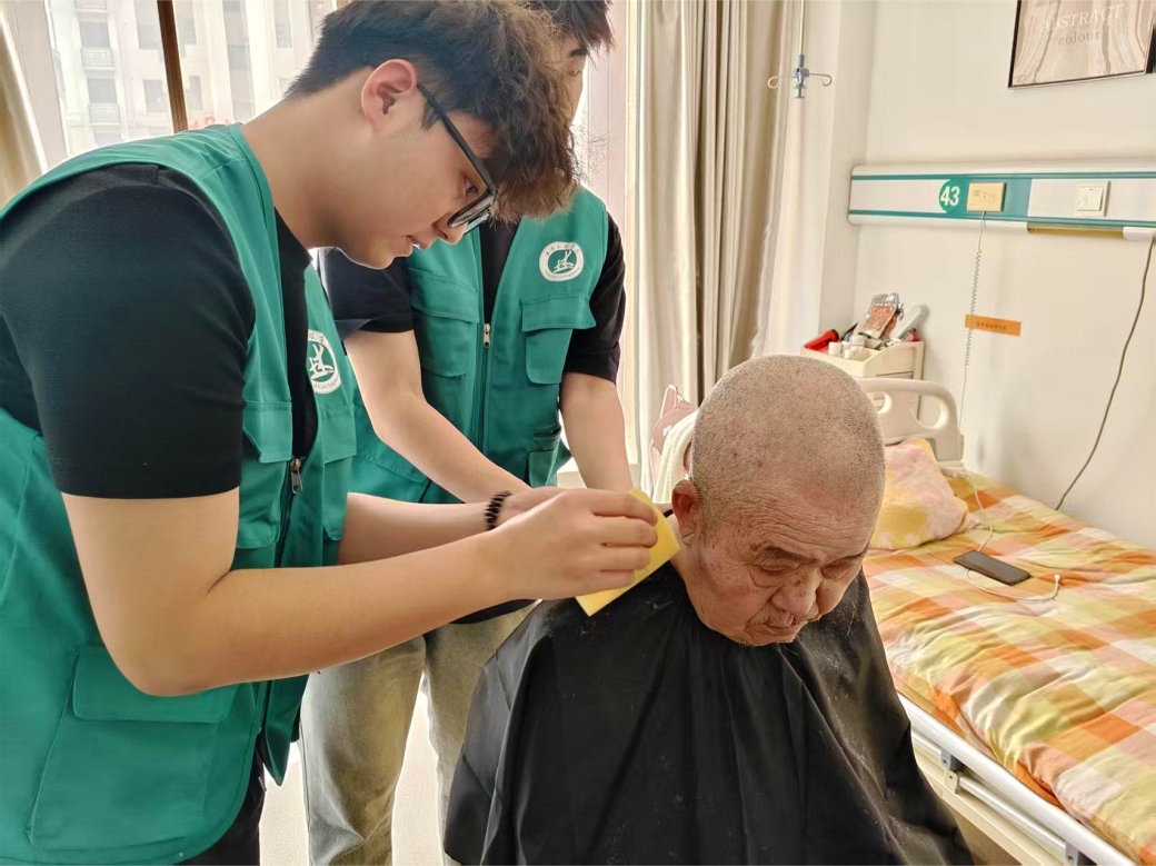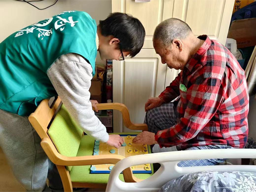 暖心陪伴是最好的礼物,志愿者们三两结伴围坐在爷爷奶奶身边,倾听爷爷奶奶们讲述岁月故事,唠闲话说家常。志愿者们有的化身“理发师”,小心的为爷爷修剪头发;有的与爷爷对坐下棋;有的拿起清洁工具,仔细擦拭公共区域的桌椅、扶手。
