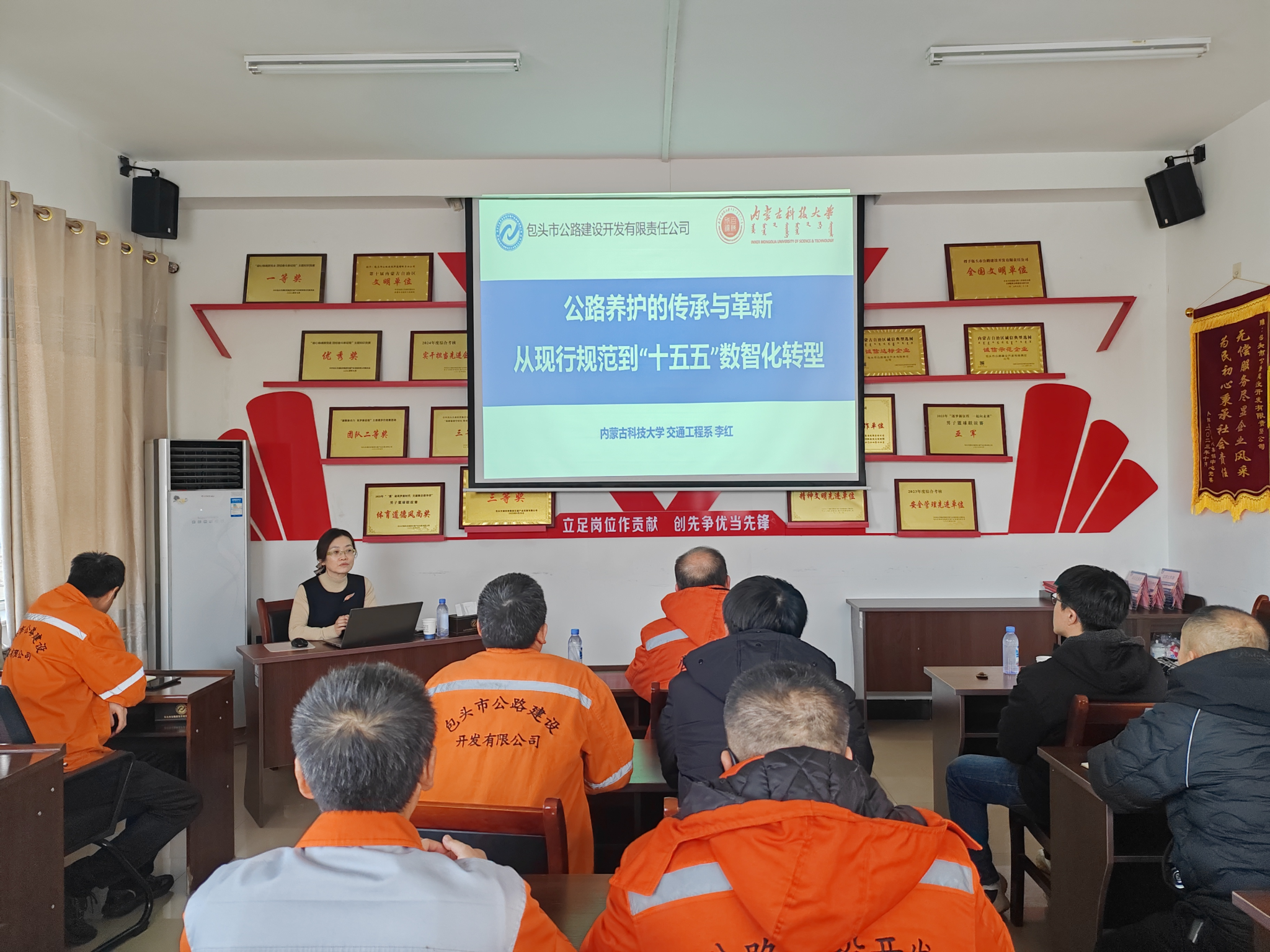 2026年1月19日,明陞m88官方网站地址交通工程系李红、张天伟老师应邀赴包头市公路建设开发有限责任公司开展专题技术讲座。